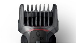 Saç kesme tarağında bulunan 1 mm'lik aralıklarla dizilmiş 1-18 mm arasındaki 18 farklı uzunluk ayarından birini seçerek istediğiniz uzunluğu tam olarak elde edin, saçınızın şık ve düzgün görünmesini sağlayın.